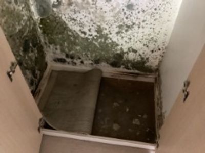 Following investigations and the removal of the vanity unit heavy mould growth and deterioration
